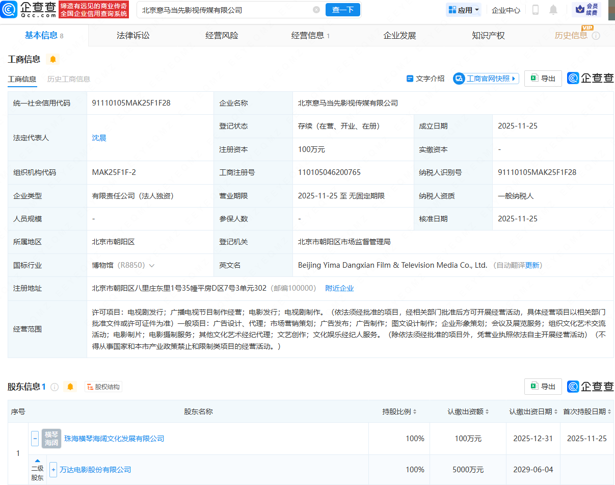 近日怎么才能让配资公司破产,北京意马当先影视传媒有限公司成立,法定代表人为沈晨,经营范围包含:电视剧发行;广播电视节目制作经营;电影发行;电视剧制作;电影制片;电影摄制服务等。企查查股权穿透显示,该公司由万达电影(002739)间接全资持股。